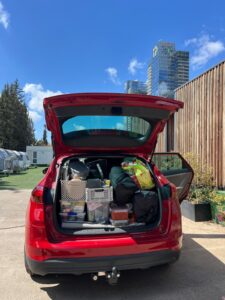 חיבוק גדול ופרידה מהקרוואן שהיה הבית במשך שבועיים.
